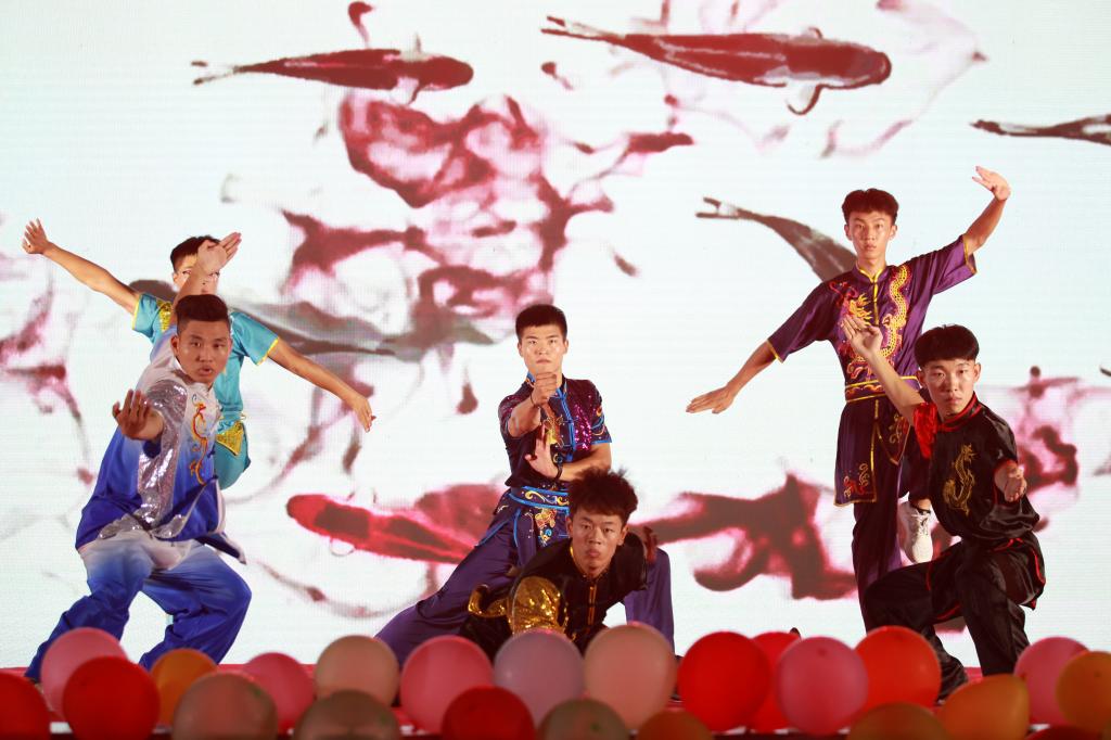 恢弘的朗诵声拉开了文艺汇演的序幕。朗诵节目《青春》展示了中华民族的儿女,用炽热的青春,把鲜红的旗帜插上了祖国的沃土的坚定。在音诗画节目《我们》中一个个年轻的面庞仿佛看到一百多年来,无数青年心怀信仰心系祖国在中国的历史中写下了浓墨重彩的一笔。同学们把青春的热血熔铸在《把未来点亮》节目的歌声里,在朗诵节目《英雄赞歌》中,看到了硝烟弥漫的战场,看到中华民族的血性铭刻在历史长河中。一支支长枪划破天际,武术队的同学们的棍尖如同画笔在水墨画卷上挥洒万千,这真可称为《后生可畏》。同学们在歌唱节目《少年》唱出了青年们初心不改、方得始终的信念,歌舞表演《曾经的模样》展示了无奋斗、不青春,无论走出多远都要记得曾经的“模样”。一段异域风情的舞蹈《观乐》展现了中华文化的包容与传承,也展现出丝绸之路的精神内涵。三江为墨,书不尽党的伟业,在晚会的中场时间,观众跟随党史宣讲团成员走进党的光辉历程,又回到那个炮火纷飞的时代,无数青年掀起了波澜壮阔的五四运动……在《红色》这个节目中,采用了说唱的的方式将红色精神融入新的表现形式,掀起了现场观众的激情,让红色文化在通俗的歌词中深入人心。《书写青春华章》中听到了青春的呐喊;百年征程波澜壮阔,百年初心历久弥坚,辅导员司书琪领唱《百年》,一起感受了党的百年艰辛历程,晚会在嘹亮的歌声中圆满结束。