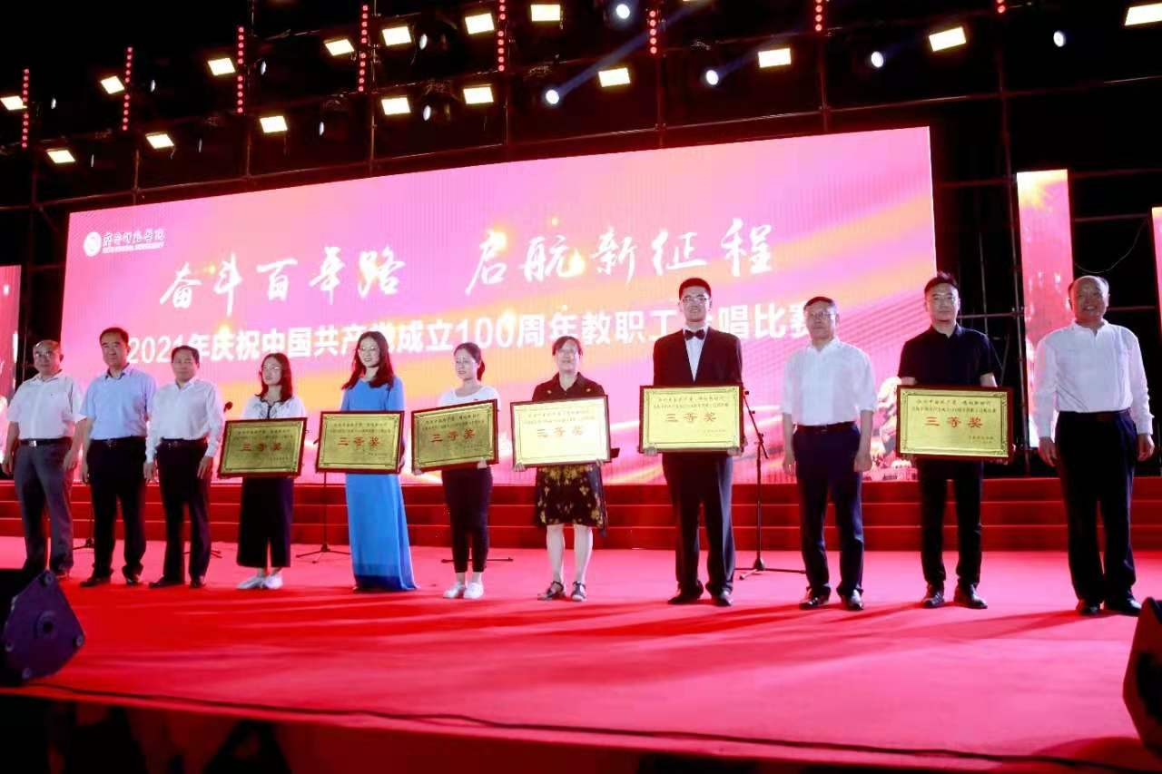 根深叶茂,七一情浓。为献礼中国共产党百年华诞,创新形式推动党史学习教育入脑入心、走深走实,进一步激发全校师生爱党、爱国、爱校的热情,提振干事创业精气神,6月24日晚,JINNIAN金年会在章丘校区隆重举行“奋斗百年路启航新征程”庆祝中国共产党成立100周年教职工合唱比赛。党委书记王玉华,党委副书记、校长林松柏,党委副书记刘宝君,副校长刘德增,党委委员、纪委书记、监察专员李启波,党委委员、党委组织部部长李伯伟,党委委员、党委统战部部长宋新刚出席,教职工和学生代表观看了比赛。
