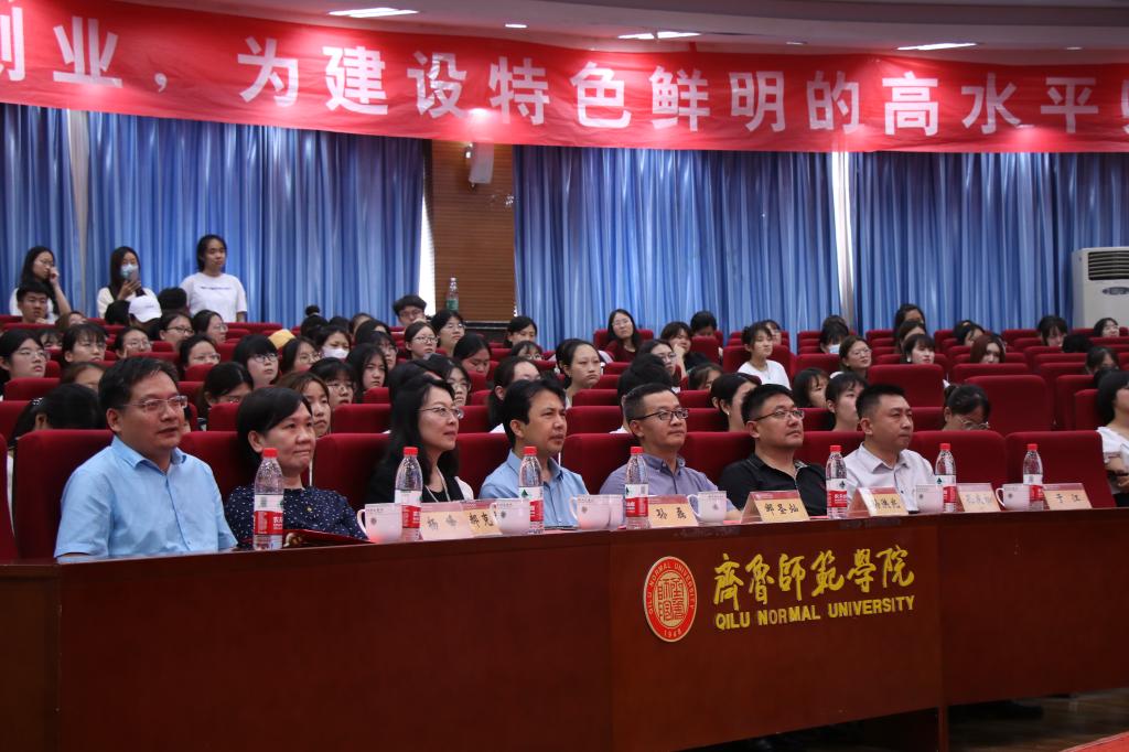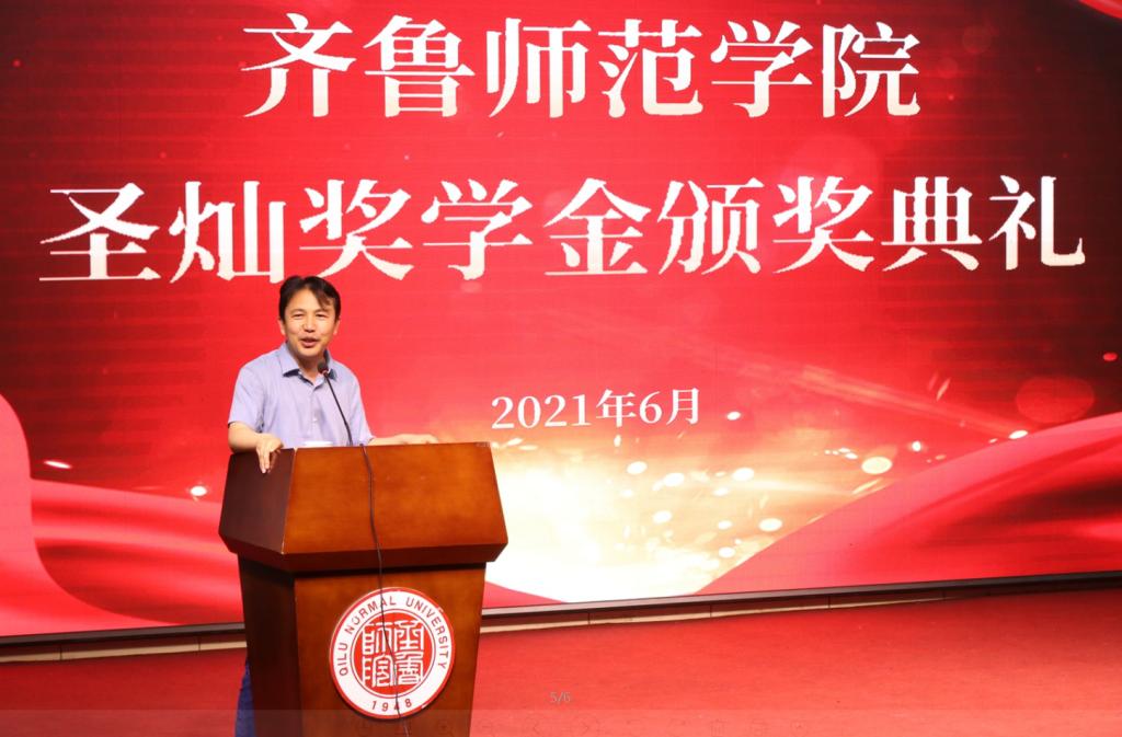 选树先进典型,传递奋斗情怀。6月10日下午,文学院在章丘校区图书馆报告厅隆重举行2021年“圣灿奖学金”颁奖典礼。金年会官网青岛校友会会长、青岛银色世纪健康产业集团有限公司董事长邹圣灿出席活动,学生工作部部长孙磊,团委书记孔庆松,教务处处长孙洪兆,学生工作处副部长、校友办主任郝克宁,文学院院长杨峰,文学院党总支副书记于江及获奖者代表在内的师生共计300余人参加了典礼。