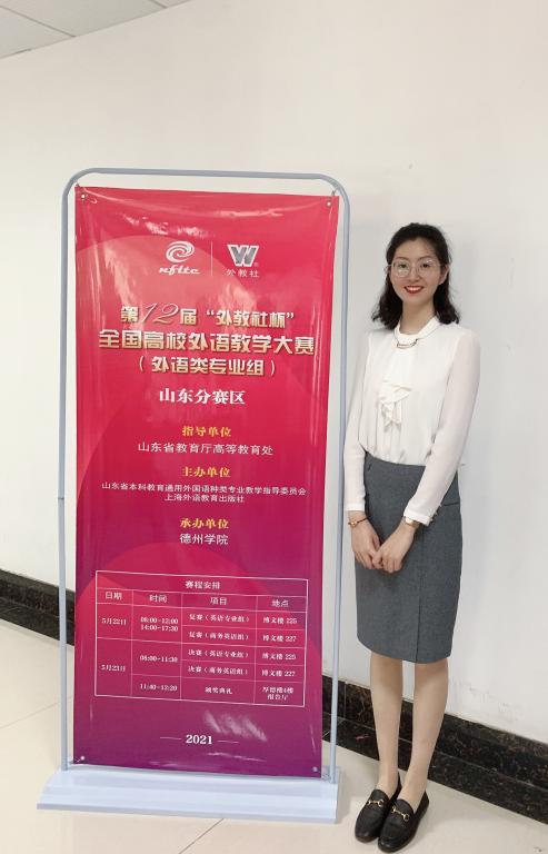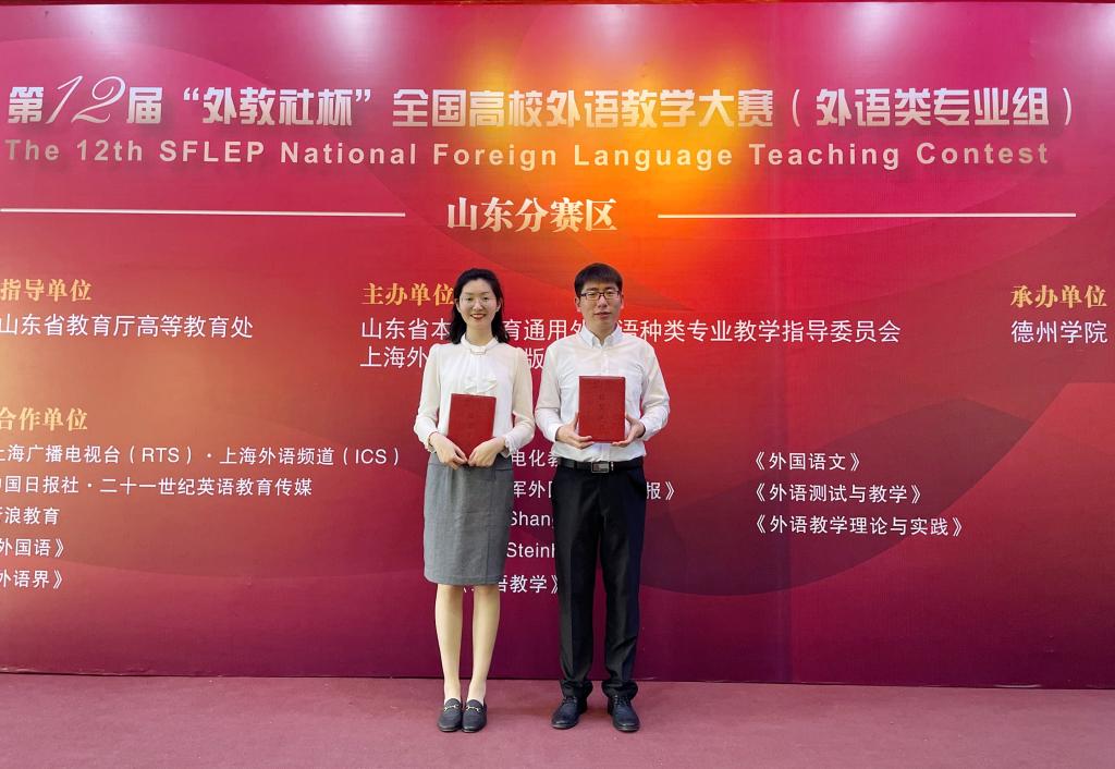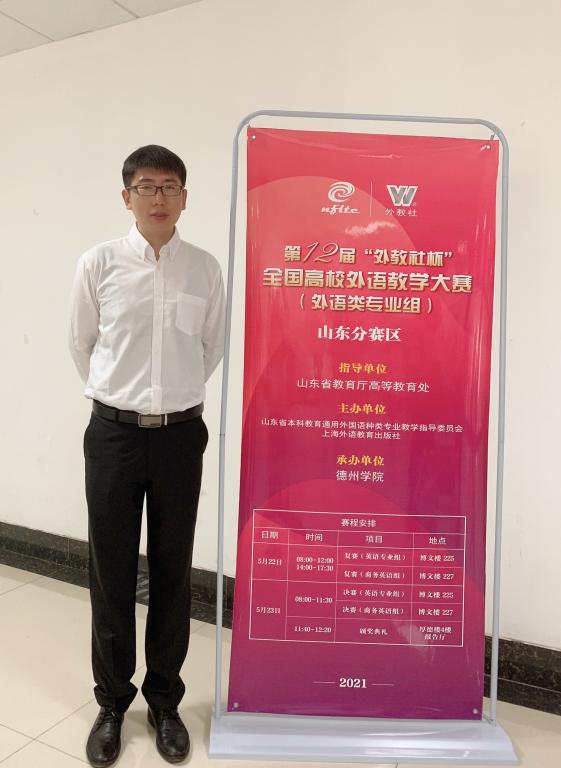 第十二届“外教社杯”全国高校外语教学大赛山东分赛区决赛于2021年5月22日-23日在德州学院举行。外国语学院教师齐龙飞荣获英语专业组二等奖、何璇荣获商务英语专业组二等奖。