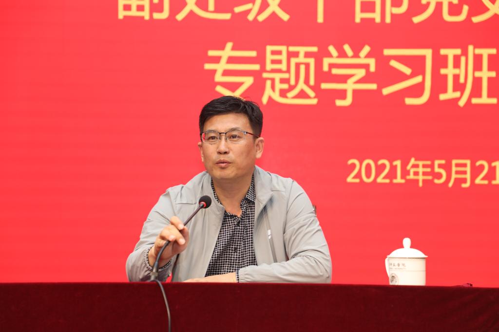 结合实际工作,他对全体学员提出四点希望:一要“学党史”,赓续奋斗使命。要进一步提高政治站位,摆正心态,通过学习不断提高运用党的最新理论成果指导实践、推动工作的能力。二要“悟思想”,传承革命精神。要进一步坚定为共产主义事业奋斗的信念,增添信仰的力量,真正做到学有所思、学有所悟、学有所得。三要“办实事”,践行初心使命。要结合自己的工作,聚焦重点任务,着力了解师生需求,真心实意帮师生解决一批急难愁盼问题,不断提高全校师生的获得感、幸福感、安全感。四要“开新局”,注重学以致用。要时刻牢记一名党员领导干部的责任,勇于担当,严守纪律,真抓实干,把学习教育与推进学校“十四五”开局之年的各项重点任务结合起来,以积极的态度、饱满的热情投入到各自工作中去。