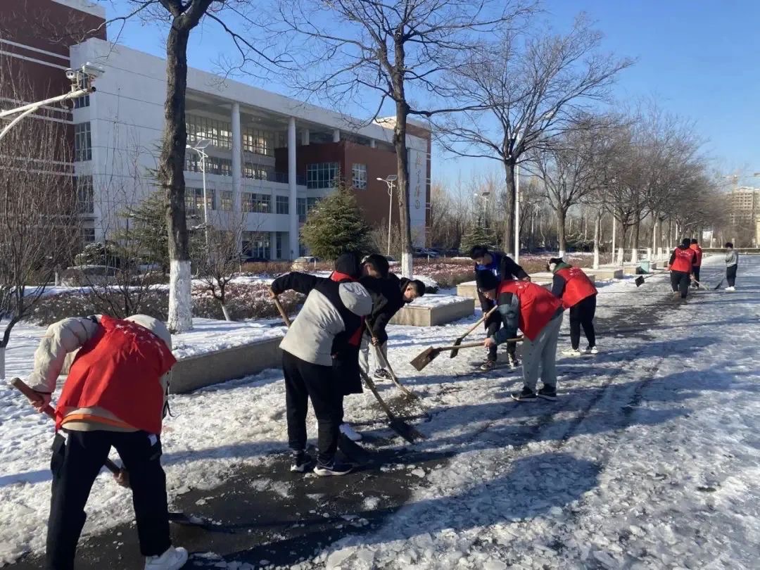由校学生会和青年志愿者协会组成的“红马甲”志愿服务队是校园里流动的最美风景。不论大事小事,到处可见“红马甲”的身影:迎新生,他们为同学扛行李、搬物品;下雪了,他们拿起扫把清理路面积雪;餐厅里,他们用真诚呼吁“光盘行动”;雷锋月,他们清洁着校园的每个角落;双选会,他们服务同学们安心找工作;打疫苗,他们做好科普、登记、引导;献血时,他们担当起血压测量员、表格记录员;会议时,他们维持秩序、体温检测、布置会场,周到细致。