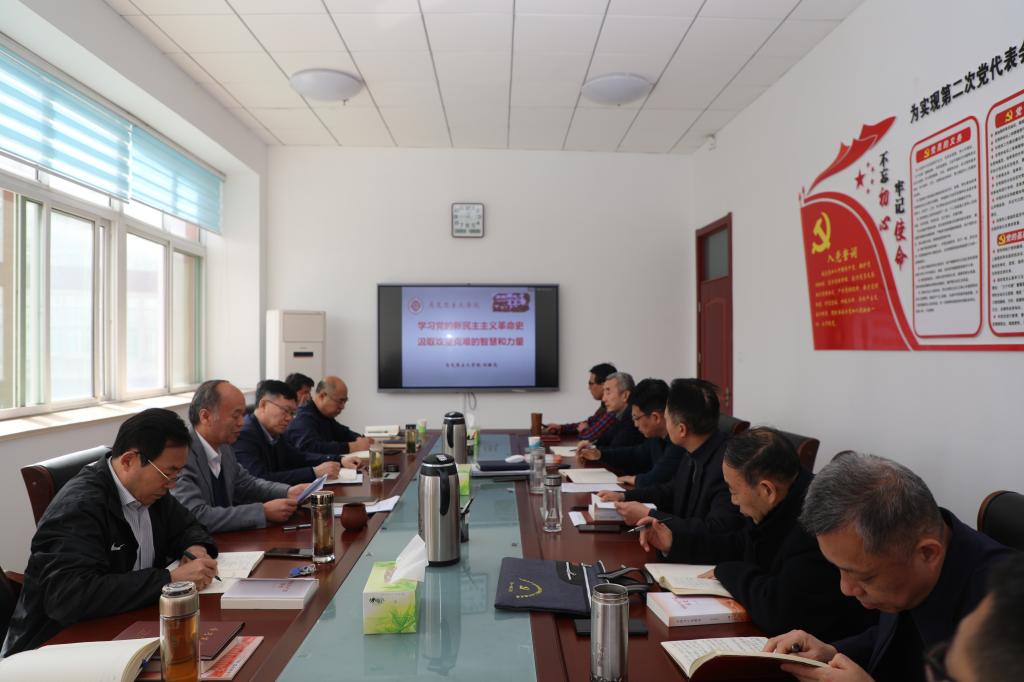 王玉华指出,重温新民主主义革命史,更加深刻认识到党中央的非凡判断力、决策力、行动力和领导力;更加深刻感悟到马克思主义中国化的重大理论价值和实践意义;更加深刻体会到“人民至上”的份量;更加深刻感受到革命先烈的英雄气概。为此,在学校开展党史学习教育中,我们要重点从四个方面下功夫。一是,坚持以党的政治建设为统领,教育引导广大党员干部从党史中汲取正反两方面历史经验,在提高政治能力、做到“两个维护”上下功夫,始终在思想上政治上行动上同以习近平同志为核心的党中央保持高度一致。二是,进一步感悟思想伟力,在学懂弄通做实、强化理论武装上下功夫,进一步加深对习近平新时代中国特色社会主义思想的深刻理解,深刻感悟马克思主义的真理力量和实践力量,坚持理论联系实际,做到学以致用、知行合一,增强工作的系统性、预见性和创造性,提高推进实际工作的能力水平。三是,要时刻求真务实、践行党的宗旨,坚持以师生为中心的发展思想,各项工作都聚焦于、服务于、满足于师生根本利益,在积极担当作为、勇于攻坚克难上下功夫,扎实开展好“我为师生办实事”实践活动,抓好即知即改、立行立改,用心用情用力解决好师生急难愁盼问题。四是,要筑牢信仰之基、强化责任担当,大力发扬革命传统、传承红色基因,赓续共产党人的精神血脉,高度重视高贵精神财富,在牢记初心使命、培育时代新人上下功夫,努力做到知责于心、担责于身、履责于行,坚持立德树人根本任务,推进全面从严治党,持续深化综合改革,加强干部队伍建设,提高现代治理能力,引领保障事业发展,切实把各项工作抓出成效,确保“十四五”迈好第一步、见到新气象。