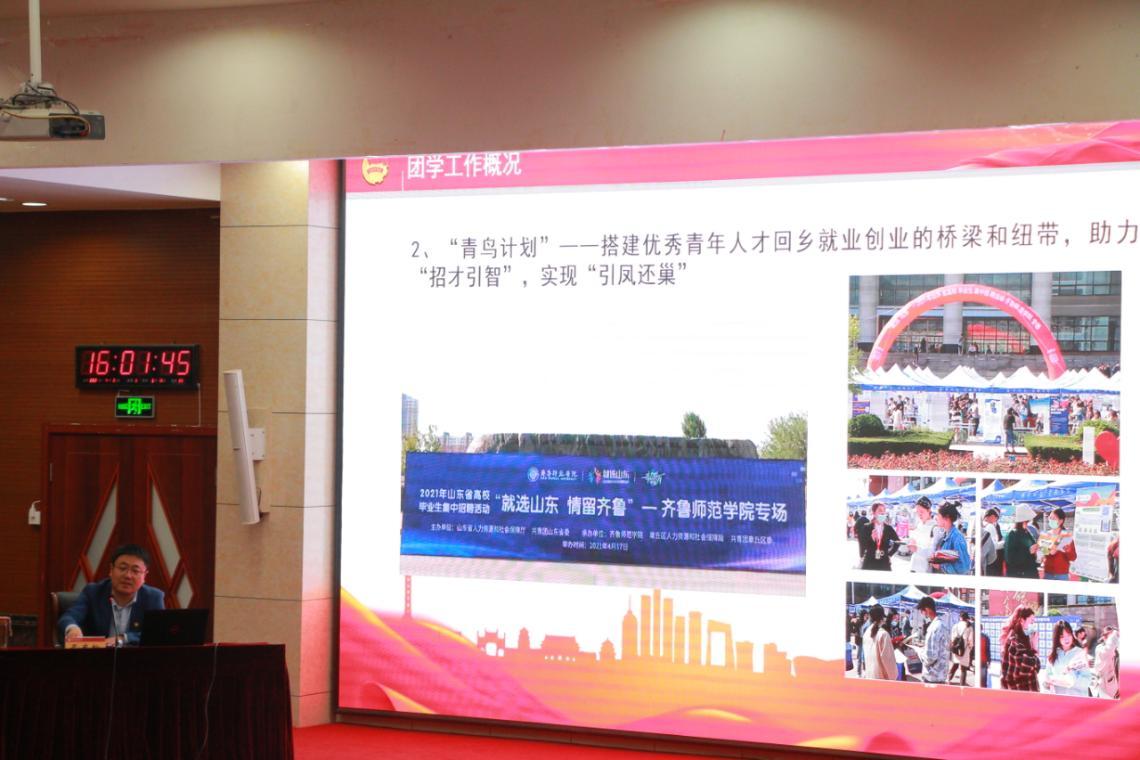 为在全校掀起党史学习教育热潮,并紧密结合党史学习教育全面提升团学干部队伍建设,金年会官网面向全校团学干部及青年学生干部成立了“青帆计划”培训班。4月21日下午,“青帆计划”培训班开班仪式及首期培训在章丘校区图书馆报告厅举行,党委书记王玉华出席开班仪式并发表动员讲话,团委书记孔庆松、马克思主义学院副教授刘金玲面向300余名团学干部进行了党史、学团改革、干部作风提升等方面的讲座培训。
