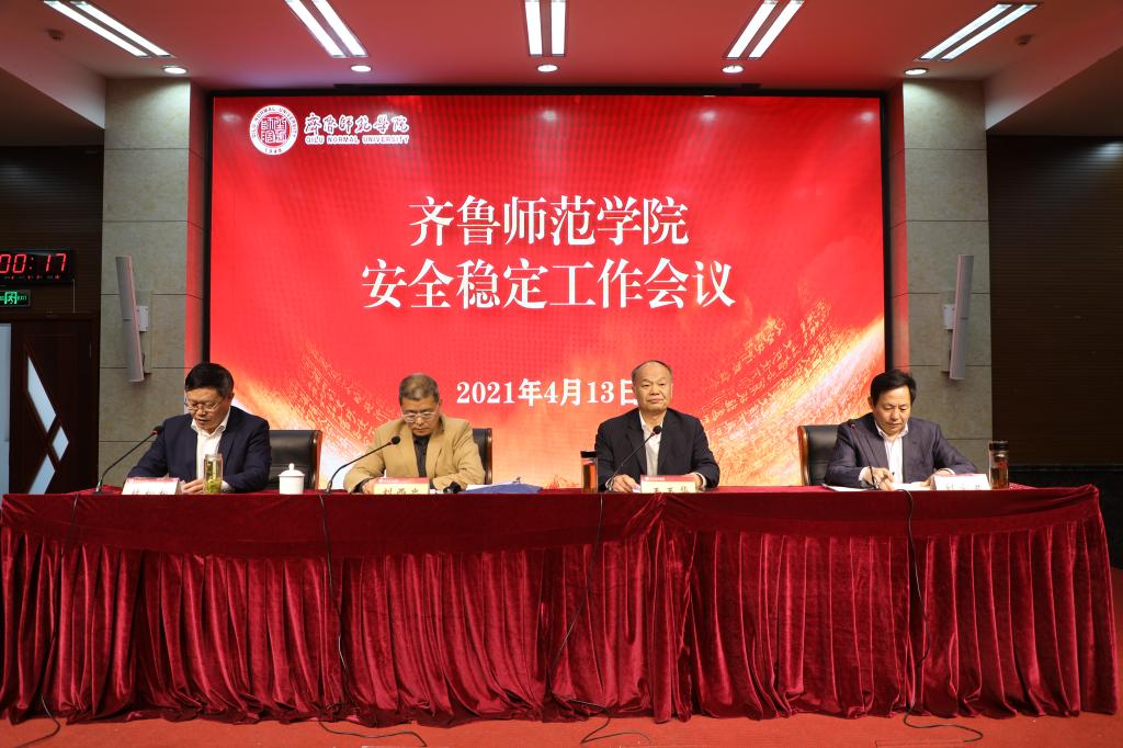 4月13日下午,金年会官网在章丘校区图书馆学术报告厅召开2021年度安全稳定工作会议。省委教育工委、省教育厅学校安全管理处二级调研员刘西忠,党委书记王玉华,党委副书记、校长林松柏,党委副书记刘宝君,党委委员、副校长王海,党委委员、纪委书记、监察专员李启波出席会议,全体中层干部、安全管理处全体人员参加会议。会议由林松柏主持。
