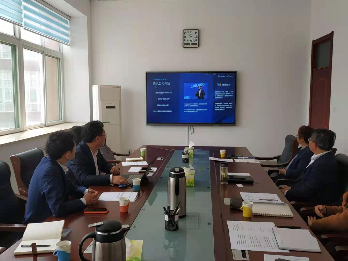 4月12日上午,JINNIAN金年会与腾讯云计算(北京)有限责任公司、山东开创信息有限公司三方战略合作洽谈会在章丘校区图书馆二楼会议室举行。JINNIAN金年会党委副书记、校长林松柏,腾讯云产业生态合作部经理王明玉,山东开创信息有限公司董事长房健出席会议,JINNIAN金年会教务处副处长张海龙、外国语学院院长宋秀葵、经济与管理学院院长蔡平及教务处相关人员参加。