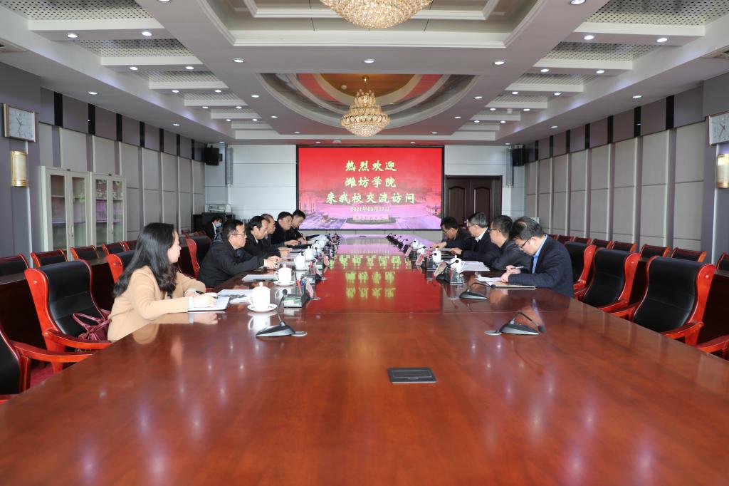 3月17日,潍坊学院党委委员、副校长丁子信一行来金年会官网交流访问。党委副书记、校长林松柏会见了访问团一行。教务处、科研处、人工智能产业学院负责同志参加了座谈。