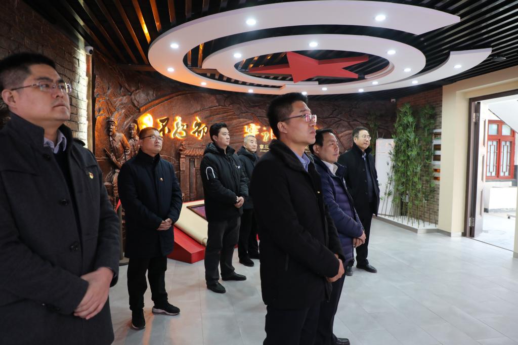 之后,两个支部的党员同志赴普集街道三山峪村章丘第一支抗日武装纪念馆,接受党性教育。碧血丹心铸青史,巍巍长白话英魂。全体人员在讲解人员的带领下,参观了烽火燃起、救亡图存、浴血奋战、精神丰碑、薪火相传等五个展厅。一张张生动的历史照片,一段段详实的记录,一件件珍贵的实物,一篇篇传奇革命故事,组合再现了章丘第一支抗日武装成立的经过,以及在第一支抗日武装的带动和影响下,章丘大地同仇敌忾、烽火燃遍。在纪念馆内,刘宝君带领党员同志们面对党旗,集体宣誓,重温入党誓词,向抗战英雄们致敬,接受心灵洗礼。
