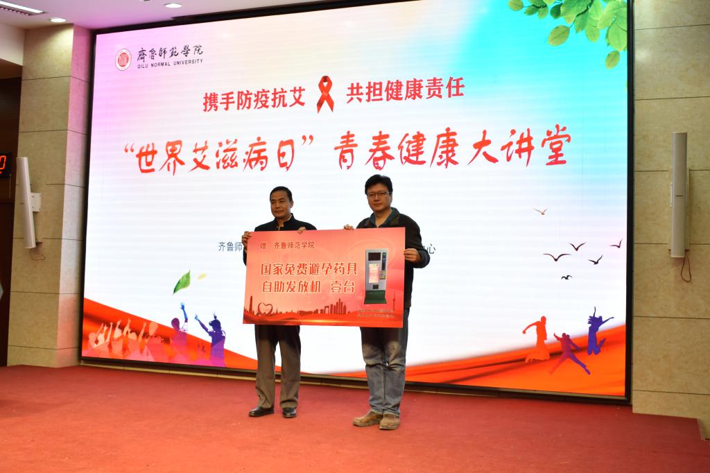 刘宝君向来宾介绍了金年会官网青春健康教育工作开展情况,连续五年中标市级、省级、国家级青春健康高校项目,建成了一体两翼四级青春健康工作体制。随后,市卫健委党组副书记、市计生协常务副会长庞涛讲话。他高度评价了金年会官网青春健康教育工作,并希望借此机会调动广大青年学生的积极性,为中国青春健康教育作出更多贡献。活动中,济南市计划生育协会、济南市计划生育服务中心向金年会官网捐赠了避孕套发放机。