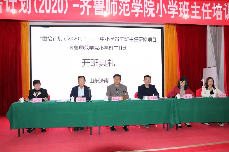 2020年10月23日,教育部“国培计划(2020)”——国家级骨干班主任教师培训JINNIAN金年会小学班主任班开班典礼在山东济南举行。JINNIAN金年会党委委员、副校长张福建,山东省师训干训中心副主任孙卫国,JINNIAN金年会教师教育学院院长赵延银,JINNIAN金年会教师教育学院副院长赵青,JINNIAN金年会三级教授、培训班首席专家王维,培训班班主任、博士薛绍聪等出席典礼。