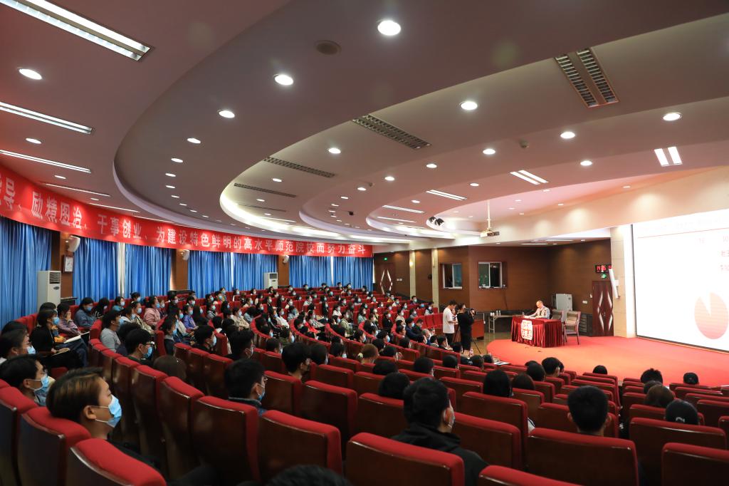 为贯彻落实习近平新时代中国特色社会主义思想和党的十九大精神,坚持立德树人初心,践行为党育人、为国育才使命,10月15日,党委书记王玉华登第47讲“国是讲坛”,为2020级新生主讲“思政教育”第一课。党委委员、副校长张福建辅讲。