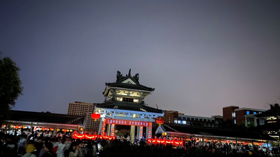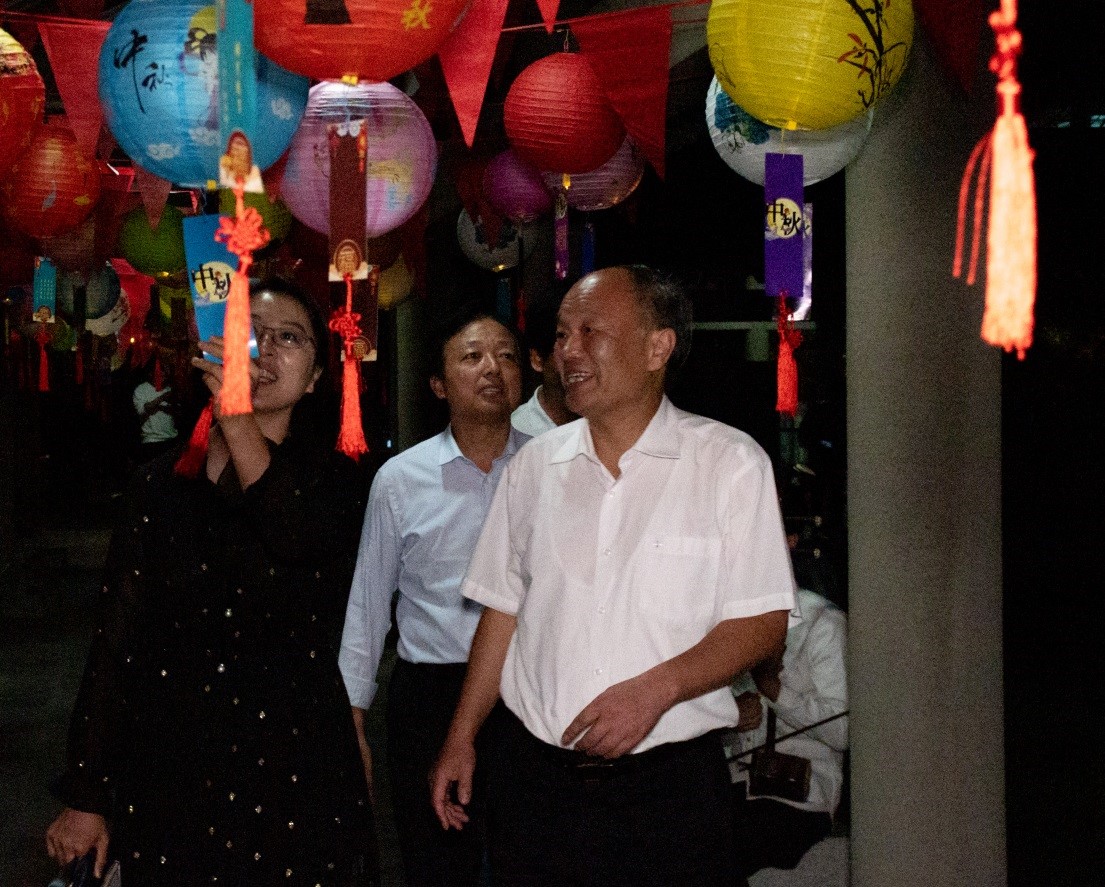 中秋月满园,国庆喜相逢。为深入贯彻落实立德树人根本任务,强化学校“文化育人”办学特色,深入挖掘中秋节、国庆节凝结的优秀传统文化和爱国主义内涵,培养学生社会主义核心价值观,教育引导学生弘扬传承中华优秀传统文化精神,金年会官网于9月30日组织开展“过好中国节日 讲好中国故事——月满中秋迎国庆 赏灯猜谜逛长廊”主题活动。学校党委书记王玉华出席活动,并与上千名学生欢度中秋佳节,党委办公室、校长办公室主任牟伟,学生工作部(处)部长孙磊陪同参与活动。