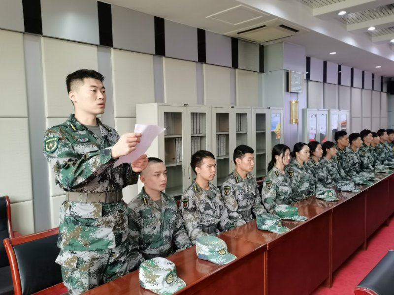 学生工作部兼武装部部长孙磊在讲话中首先向教官团成立表示祝贺,向各位教官克服困难,踊跃参加2020级新生军训工作表示感谢。孙磊部长对全体教官提出四点要求:一、提高站位,责任担当。军训和国防教育工作是一项政治任务,是在扣好学生“第一粒扣子”关键时期的一项重要抓手。全体参训教官和辅导员要从培养新时代建设者和接班人的高度做好军训工作,高度重视,严肃对待,既要当好军事训练教官,也要当好新生第一课的讲师,努力为新生上好入学“第一课”;二要转化角色,科学施训。今年是我们首次采取自训的方式,全体教官要尽快完成角色转换,严格按照教学训练大纲,确保训练效果;三是严格纪律,以身作则。大家注意自己的言行举止,严格落实教官条令条例,通过言传身教,积极讲授红色故事,传承红色基因,磨炼意志品质,树立国防观念,引导学生爱校荣校,为学弟、学妹树立好的榜样。四是人文关怀,确保实效。今年是在疫情防控复杂形势下开展的错时错峰军训。既要严格要求,又要关心关爱,既要考虑训练效果,也要考虑学生的身体承受能力。关注学生的身体和心理健康状况,发现发热症状,及时采取措施,启动应急预案。