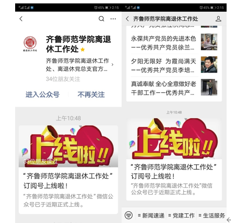 “JINNIAN金年会离退休工作处”微信公众号正式上线