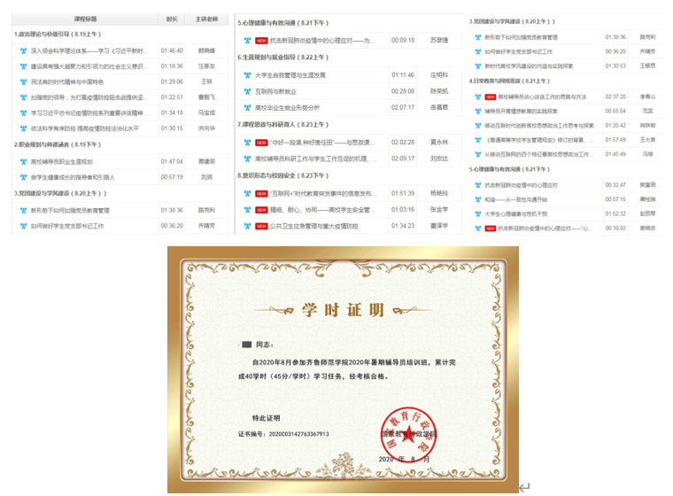 为深入学习习近平总书记系列重要指示精神,引导辅导员深刻认识疫情防控背景下加强学生思想政治工作、提高学生教育管理能力的重要性和紧迫性,今年金年会官网暑期辅导员培训班以“疫情防控常态化下的辅导员队伍工作能力提升”为主题,围绕“政治理论与价值引导”“职业规划与师德涵养”“党团建设与班级指导”“日常管理与思政教育”“心理健康与有效沟通”“生涯规划与就业指导”“课程思政与科研育人”“意识形态与校园安全”8个模块展开,共开设29门课程,内容既包含习近平新时代中国特色社会主义思想、习近平总书记疫情防控系列重要讲话精神解读等政治理论内容,又涵盖新时代高校学风建设、抗击新冠肺炎疫情中的心理应对、大学生自我管理与生涯发展、辅导员科研工作与学生工作互促等工作实操指南,内容涉及面广、指导性强,全校辅导员累计在线学习时长152415分钟,人均学时达1905分钟。