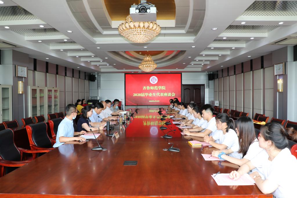 随后,来自各学院14名2020届毕业生代表畅谈交流,他们向母校汇报了四年师院生活取得的优异成绩,分享了在师院学习、生活和成长的点滴,表达了对母校师长的感恩眷念、对同窗好友的祝福挂念。他们中有人选择继续深造,有人选择闯荡职场,有人选择扎根基层建功立业,有人选择从事科研实现抱负。大家纷纷表示,要秉承齐鲁师院“博学明道,崇德象贤”的校训精神,把昨天的成绩和荣誉视为今天的起点,以青春之我、奋斗之我,树立与新时代同心同向的理想信念,在激情奋斗中绽放青春光芒。