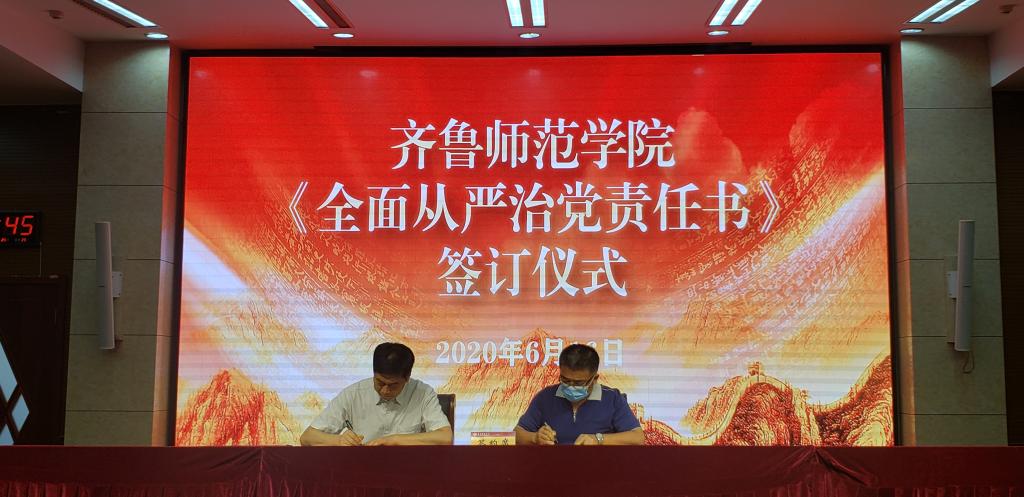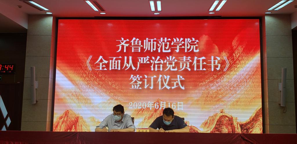 会上,学校党委书记与校领导班子成员之间、学校领导与分管部门代表之间,分别签订了《全面从严治党责任书》。