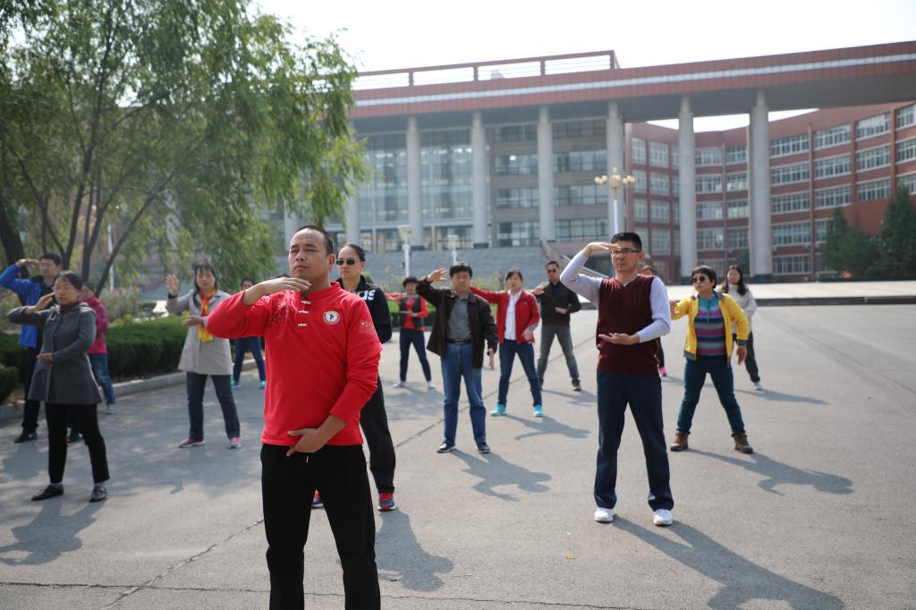 近日,金年会官网工会根据校党委、校行政关于开展全民健身活动、关心教职工健康的要求,组织开展了为期3个周的“八段锦”健身学习活动。生命在于运动,健康相伴行远,高节奏的现代生活离不开健身运动的良好习惯。为增强全校教职工参与体育健身活动兴趣,养成重视和热爱体育运动,加强身体锻炼的健康意识,金年会官网专门聘请了嵩山少林寺武术馆焦宏敏等老师,来校为大家现场教授传统健身功法“八段锦”。