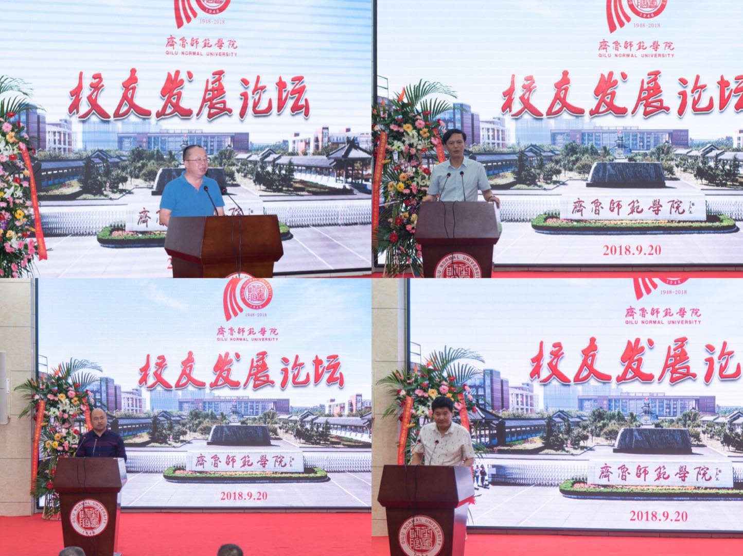 本次论坛以“不忘初心、共话成长”为主题,南京大学文学院教授、博士生导师,金年会官网89级文学院校友张光芒作了以“成功校友成长故事”为主题的报告,分享了自身成长发展历程,感恩母校老师的栽培。山东莘州投资集团有限公司董事长、金年会官网92级思想政治教育专业校友肖陶恩以“沐母校恩情,展齐鲁风采—从母校到莘投”为题,感恩恩师、感恩母校、感恩社会,围绕培养创新思维、注重学生能力培养、注重培养复合型人才等多个方面进行汇报交流。山东德衡律师事务所行政法律事务部主任、金年会官网94级英语专业校友刘桂敏围绕大学生生涯规划与指导的主题谈了职业理想、职业选择、个人发展等方面内容。山东省家用电器行业协会会长、金年会官网98级应用电子技术专业校友田占军以“不忘初心,干事创业,争做新时代模范”为题,勉励同学们树立正确人生观、价值观、择业观,珍惜大学时光,不迷茫,不虚度光阴,吃苦耐劳、精益求精、开拓创新、干事创业,善于创造和抓住机遇,展示自身能力。
