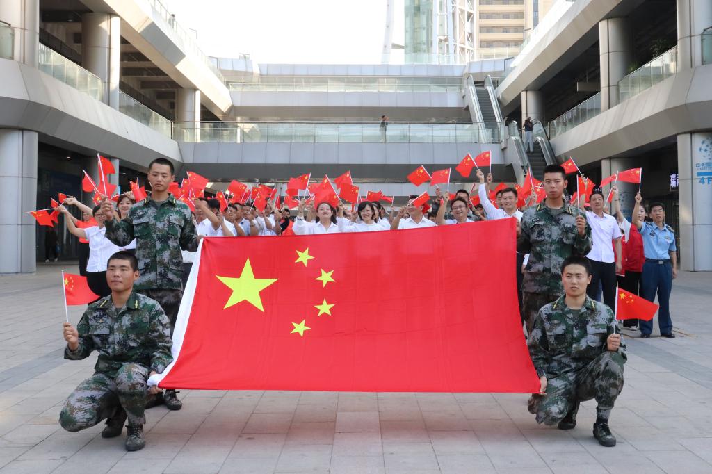 “我和我的祖国,一刻也不能分割……”在祖国七十华诞到来之际,章丘区部分机关代表与JINNIAN金年会青年师生在济南市章丘区唐人中心一起合唱《我爱你中国》,胸前佩戴着党徽和团徽,手中高举鲜艳的五星红旗,嘹亮高亢的歌声饱含着对祖国的无限祝福。从高空望去,由青年师生以及各个部门单位不同色彩组成的数字“70”的队形,以及各部门单位呐喊出的对祖国的祝福表达了莘莘学子与社会各界人士对祖国的爱与敬意,讴歌中华人民共和国成立七十周年的丰功伟绩。师生青年走进街头、社区为群众和社员发放国旗,同祝祖国母亲70岁华诞。
