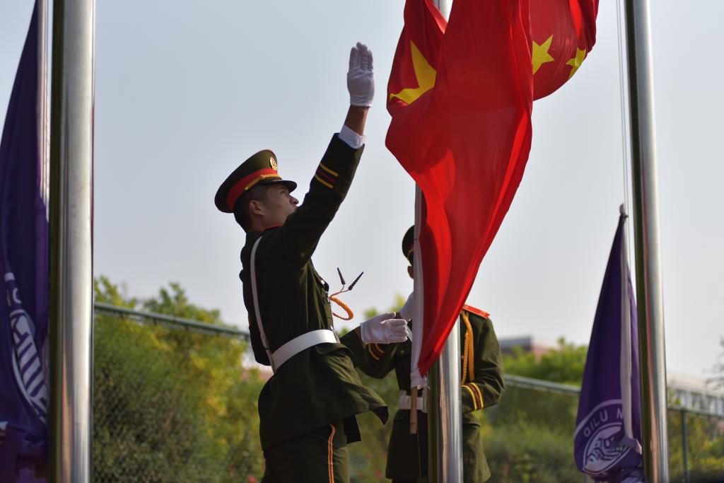 9月29日上午,金年会官网2019级新生军训成果汇报暨总结表彰大会在章丘校区田径运动场隆重举行。校党委书记王玉华,党委副书记、校长林松柏,中国人民解放军某部队副教导员张坤,副校长刘德增、张福建、王海,纪委书记李启波出席大会。承训部队官兵,学校相关职能部门负责人,各学院院长,党总支书记、副书记,团总支书记、副书记、辅导员及2019级全体新生参加大会。王玉华书记向承训部队赠送锦旗,林松柏校长做军训总结讲话,大会由张福建副校长主持。