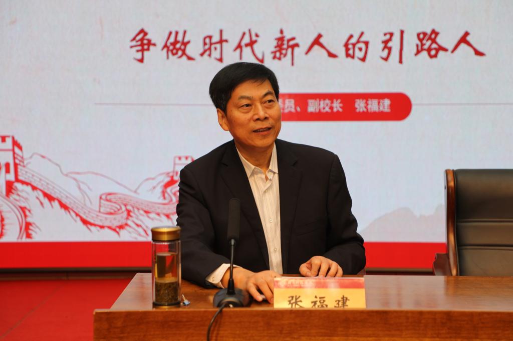 张福建副校长从“守初心,就是要提高政治站位,认清培养时代新人的崇高使命和责任担当”“担使命,就是要积极主动作为,扣好学生成长成才的‘第一粒扣子’”“找差距,就是要打破思维定势,持续推进学生工作改革创新”“抓落实,就是要真抓实干整改,切实转化为培养时代新人的自觉行动”四个方面做了深刻阐述。他指出,对高校教育工作者来说,只有联系学校实际、联系学生实际,为党育人、立德树人,把握规律、尽职尽责,把学生培养成为德智体美劳全面发展的时代新人,才能守住初心,不辱使命。面对新形势、新问题、新任务、新挑战,工作在学生思想政治教育和日常管理一线的学工人员,只有清醒地认识新时代自身的角色定位、能力要求、责任使命,才能成为时代新人的引路人。
