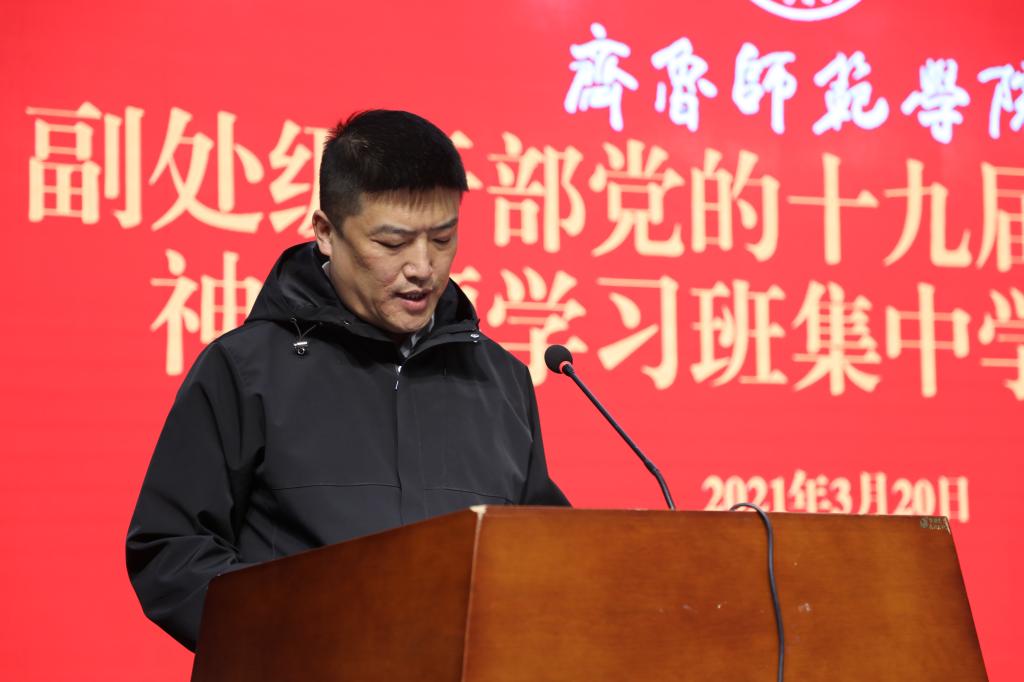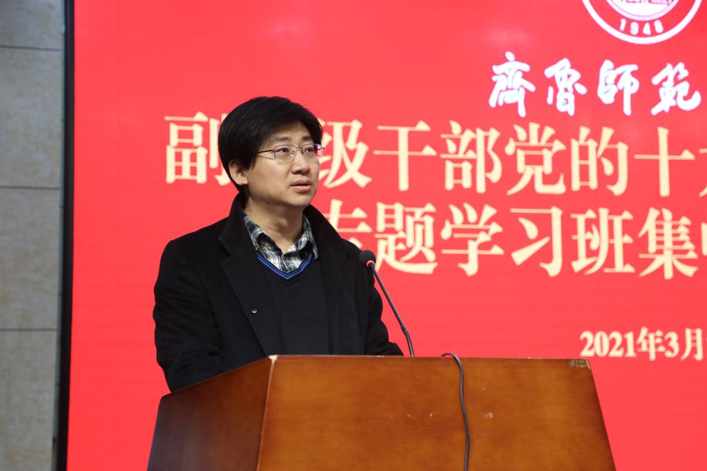 3月20日下午,在章丘校区学术报告厅举行了金年会官网副处级干部党的十九届五中全会精神集中学习结业式。全体学员参加了结业式,党委副书记刘宝君出席并讲话,党委委员、组织部部长李伯伟主持。