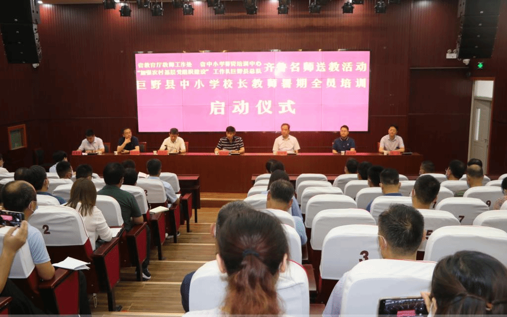 8月1日,省教育厅教师工作处处长朱传纲、一级调研员李文生、金年会官网副校长刘德增、省师训干训中心主任毕诗文出席了齐鲁名师名校长志愿送集中培训启动仪式。省教育厅教师处、省师训干训中心遴选组织了45名国家级教学名师、齐鲁名师名校长和特级教师,将在暑期以远程送教、志愿服务形式,对巨野县12000多名中小学校长教师开展全员培训。巨野县镇街中心校、县直学校校长、驻城民办学校校长,各镇街中学校长,局科室负责人及相关科室全体人员,部分教师代表参加培训。