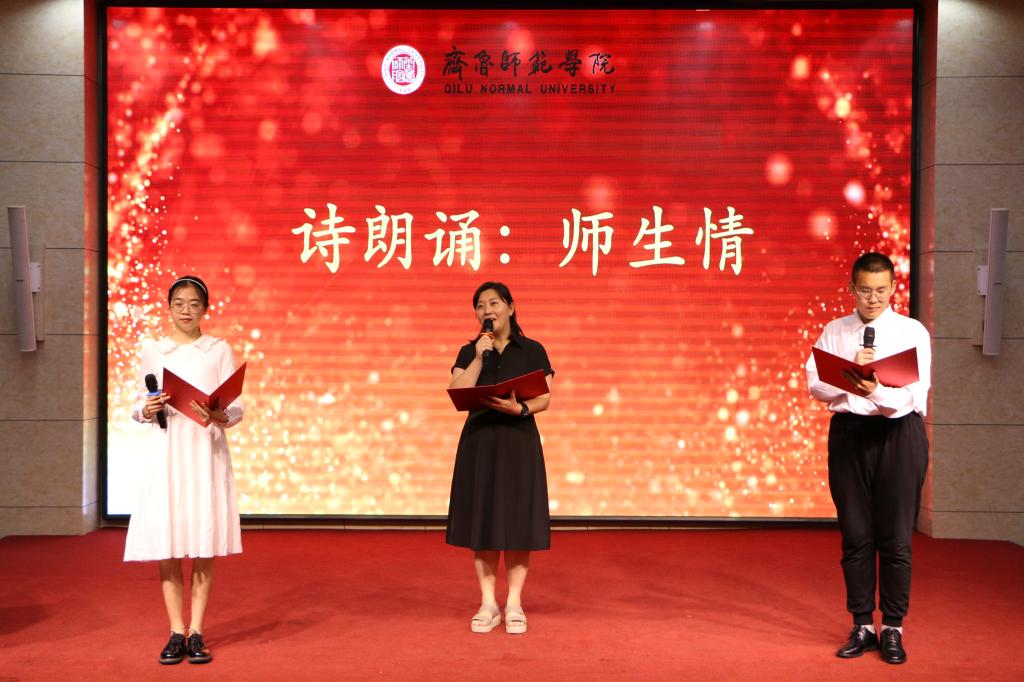 桃李不言,下自成蹊。教师是太阳底下最光辉的职业,爱与奉献是她们一生的坚守。一声老师,一生老师。学校2021年度最美教师、文学院张磊与她的学生们带来的诗朗诵《师生情》,带来共鸣,触动心灵。师恩永难忘!作为在校学生,他们也表达了祝全体老师们节日快乐的祝福!