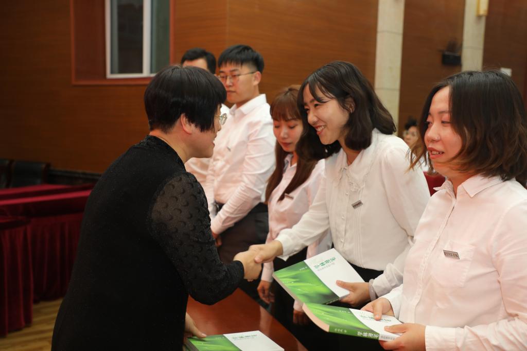 宣誓仪式结束后,作为一名从教37年的老教师,陈海燕教授向新入职教师赠送了自己回顾总结从教以来教学实践积累所撰写的《学林漫步——我的教育科研之路》一书,通过自身从教生涯的艰辛与欢乐、蹉跎与收获,来激励青年教师发展成长。初心不悔,师德传承。简短的赠书仪式,却饱含了师者的情怀和对教育事业的传承与弘扬,也代表着对齐鲁师院青年教师们的期待和鼓舞。