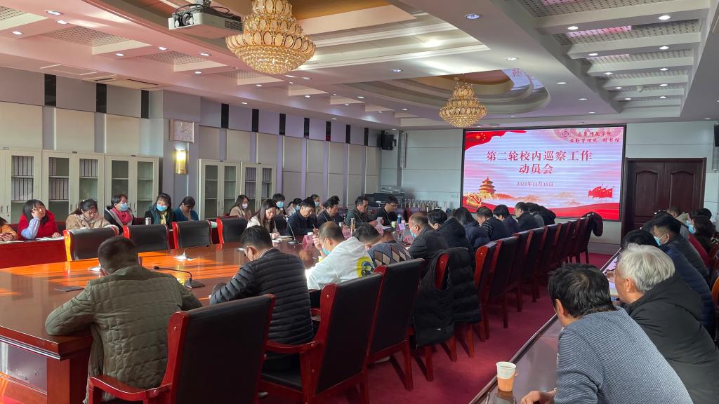 随后,刘宝君作了讲话,从三个方面阐述了校内巡察的重要意义:提高政治站位,增强政治觉悟,深刻理解校内巡查的重大意义;履行巡查职责,严守巡查纪律,保质保量的完成本次巡查任务;落实巡察要求,聚焦问题整改,着力推动工作。他指出,图书馆党总支、后勤管理处党总支及全体教职工要进一步提高校内巡察的认识,严格按照学校巡察方案要求积极做好各项准备工作,主动配合巡察组开展好巡察。