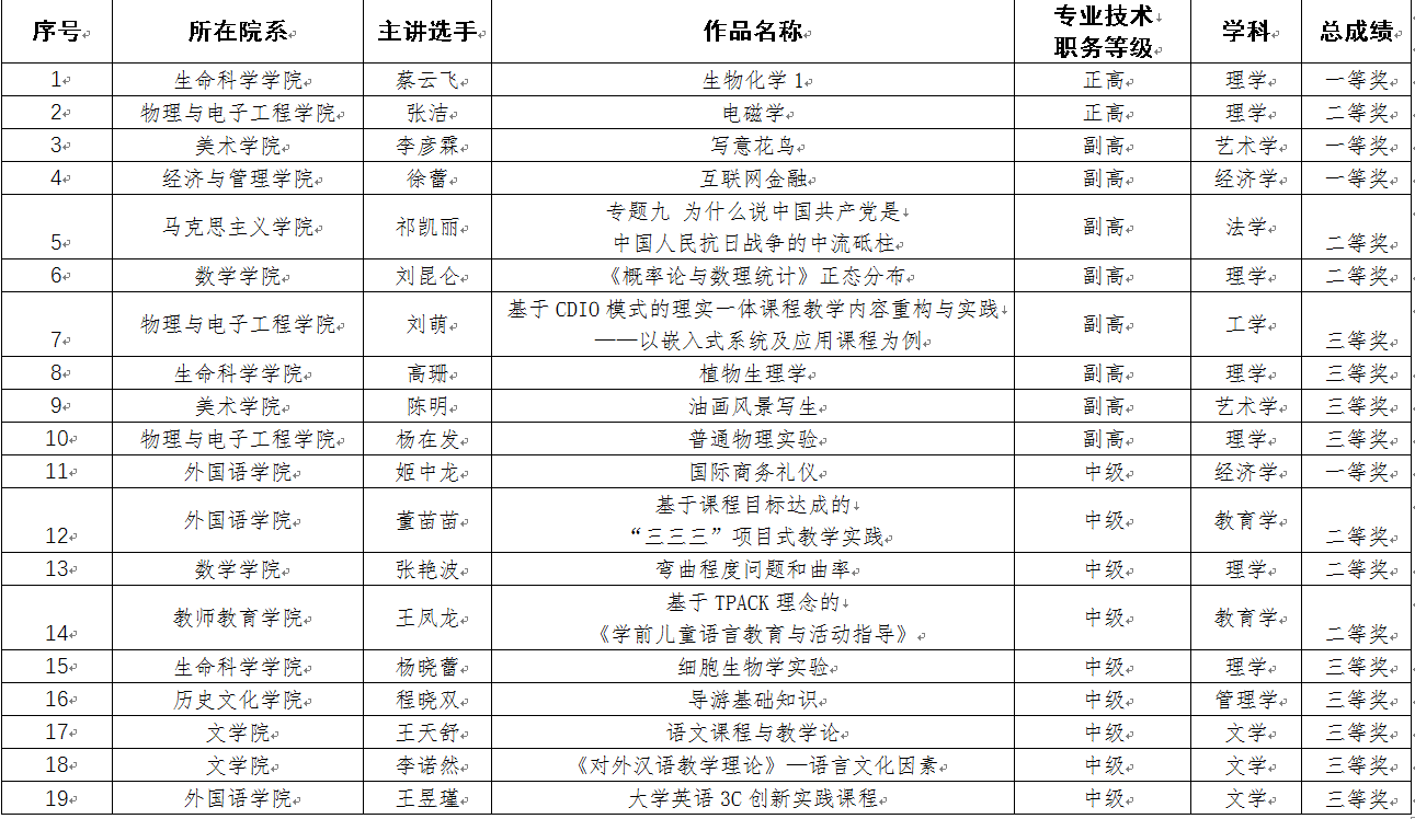 本次大赛分为教授组、副教授组和中级及以下三组,来自全校15个学院的20位教师参加了比赛。本次教师教学创新大赛评委全部由校外知名专家担任,专家评委从理念与目标、教学内容、过程与方法、考评与反馈等多方面对参赛选手进行评价打分。参赛教师在教学创新设计汇报环节,着装典雅规范、精神饱满充沛;教学目标基于能力范式的基本内涵,坚持学生中心、产出导向、持续改进,重视学生高阶能力的培养;教学内容注重思政元素的嵌入,努力做到课程内容有深度、广度;教学过程与方法体现知识、技能和情感的培育,帮助学生成为自主学习者;考评与反馈讲求过程性评价与终结性评价相结合,合理评价学生知识、技能的掌握情况。本次比赛对赛程进行了创新,每位参赛选手在汇报完个人创新设计后,评委专家依据参赛教师的汇报进行10分钟的提问交流,并对参赛教师的表现进行现场点评,以帮助参赛选手发现和改正自身不足,更好的提升教学水平。赛后,三位评委为此次比赛作赛后总结点评。专家指出,教师教学创新大赛要以立德树人为根本任务,目的是促进信息技术与教育教学融合创新发展,引导广大教师潜心教书育人,提升教师教学创新能力,争做“四有”好老师。并能从学科发展、社会需求、学生成长来进行学情分析,用数据来支撑创新成效,不断提升自身的创新能力,切实解决教学过程中的痛点、难点。