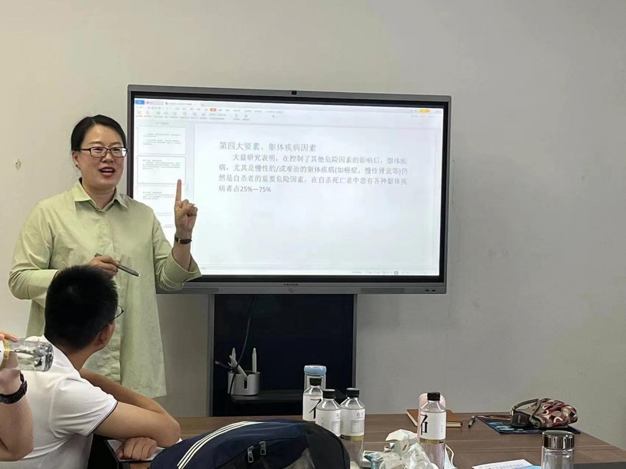 学生心理健康教育中心主任苏睿从心理育人背景及当代大学生心理状况大趋势出发,聚焦高校辅导员心理育人工作实际。从学校心理健康教育工作体系介绍、队伍发展成长、心理健康教育载体、心理危机干预等四个方面清晰阐述了高校辅导员心理健康教育的工作方法与重点。高校辅导员在学生心理健康教育过程中发挥着至关重要的作用,是心理育人的重要载体。培训中,辅导员老师们集体学习了和高校密切相关有关法律法规条款,增强了在心理问题辅导时应该具备的法律意识。同时,苏睿结合详实的案例分享了心理育人的难点和技巧,提出辅导员不仅要关爱学生,也要关照自己,在身心健康的基础上做好学生心理健康教育工作。