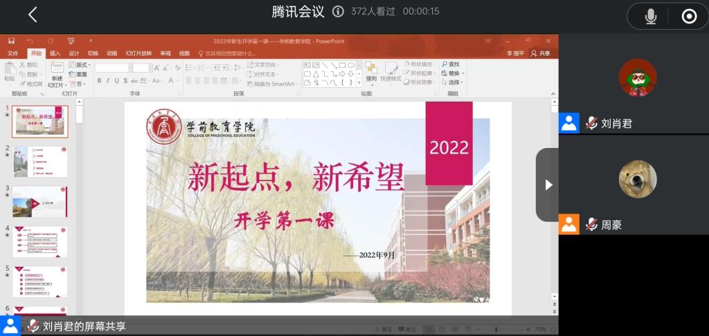 根据学校工作要求,为帮助2022级新生尽早了解和熟悉大学生活,推动新生入学工作顺利完成,在9月9日至11日期间,学前教育学院以线上形式组织开展了专题入学教育和新生家长会,从思想引领、专业学习、心理健康、安全教育、家校共建、迎新及疫情防控等方面加强教育,扎实推进新生入校工作。