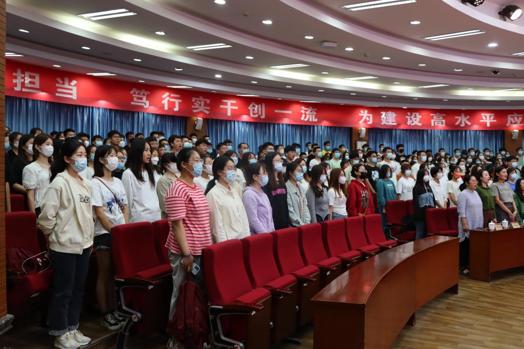 青年教师代表王玲发言,从专业学习、人际关系、能力培养、科学研究、生活安全等方面提出建议,强调“机会永远留给有准备的人”,寄语同学们扎实提高专业技能、积极建立良好的人际关系、踊跃参加各项实践活动、培养科研思维与素质、重视各类安全问题,无愧于自己、不虚度光阴。