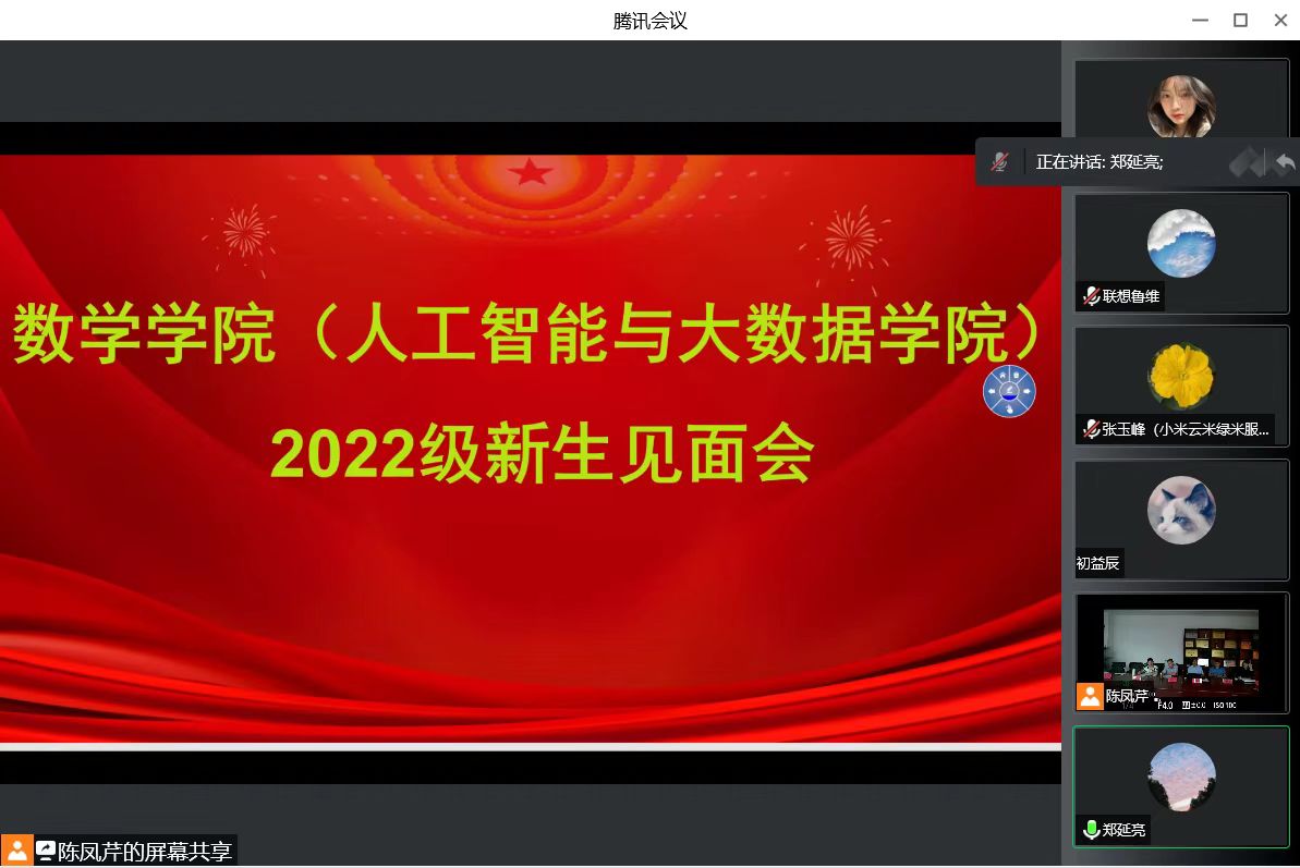 9月15日,数学学院召开2022级新生及家长线上见面会,数学学院党委书记郑延亮、院长张克玉、副院长刘春晗,联想教育产业学院院长、课程研发高级总监鲁维,学院办公室、团总支相关老师和2022届全体新生及家长参加本次见面会。数学学院党委副书记初益辰主持会议。