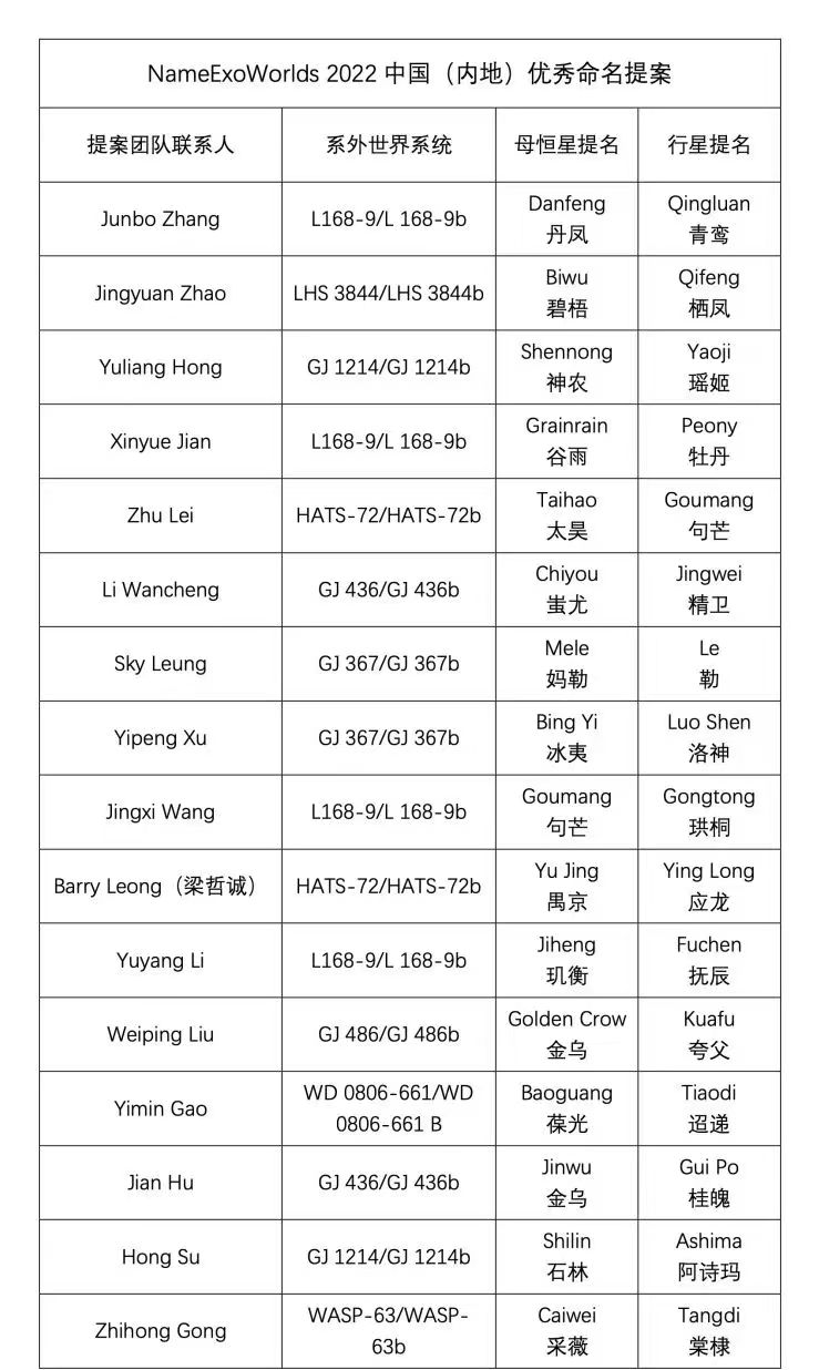 本次国际天文学联合会(IAU)2022年太阳系外世界命名活动(NameExoWorlds2022)中国(内地)共收到有效命名提案52个,参与提名团队成员总数达550人,组织的与系外行星有关的各类线下或线上科普活动惠及受众超过8万5千余人次。