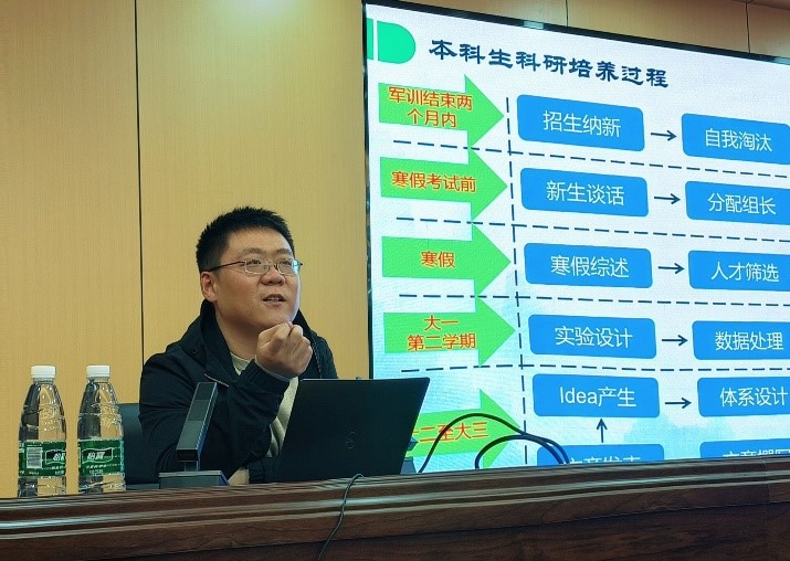 3月17日下午在二教A111,化学与化工学院邀请鲁东大学教师徐文龙以《大学生如何做好科研——大学生科研与竞赛》为题向学院师生做报告。徐文龙从大学生在校状态、科研如何吸引本科生出发,深入浅出地介绍了本科生科研培养的过程、大学生竞赛的国家政策、大学生竞赛分类与规则等,结合“挑战杯”金奖项目向学院师生详细分享备赛的过程与经验。学院师生从学生培养、选题来源、写作提升等方面与徐老师积极沟通,现场气氛活跃热烈。