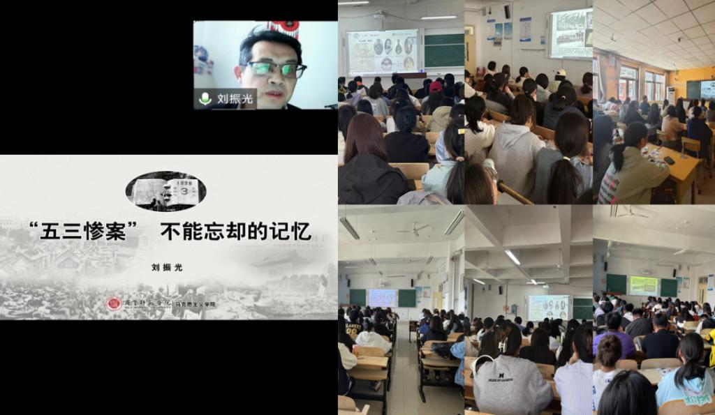 刘振光采用理论联系实际的教学方法,结合丰富的史料,围绕“五三惨案”的国际国内背景、惨案发生的深层次原因、历史启示和青年学生的历史担当等内容,图文并茂、深入浅出地为广大青年学子讲授了一堂兼具针对性和感染力的思政大课。