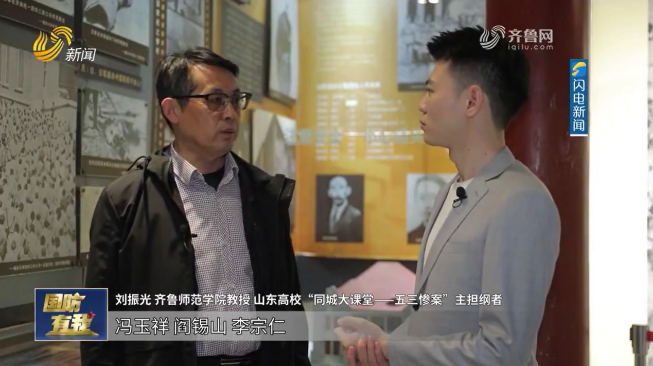 4月28日,在五三惨案纪念日来临之际,山东卫视《国防有我》栏目在主打版块《国防零距离》发布专题片:《“五三惨案”——不能忘却的记忆》。山东省优秀共产党员、金年会官网马克思主义学院教授、山东高校“同城大课堂——五三惨案”主担纲者刘振光作为特约嘉宾受邀主讲,引导国人铭记历史、勿忘国耻,提高忧患意识,增强国防观念与爱国情怀。