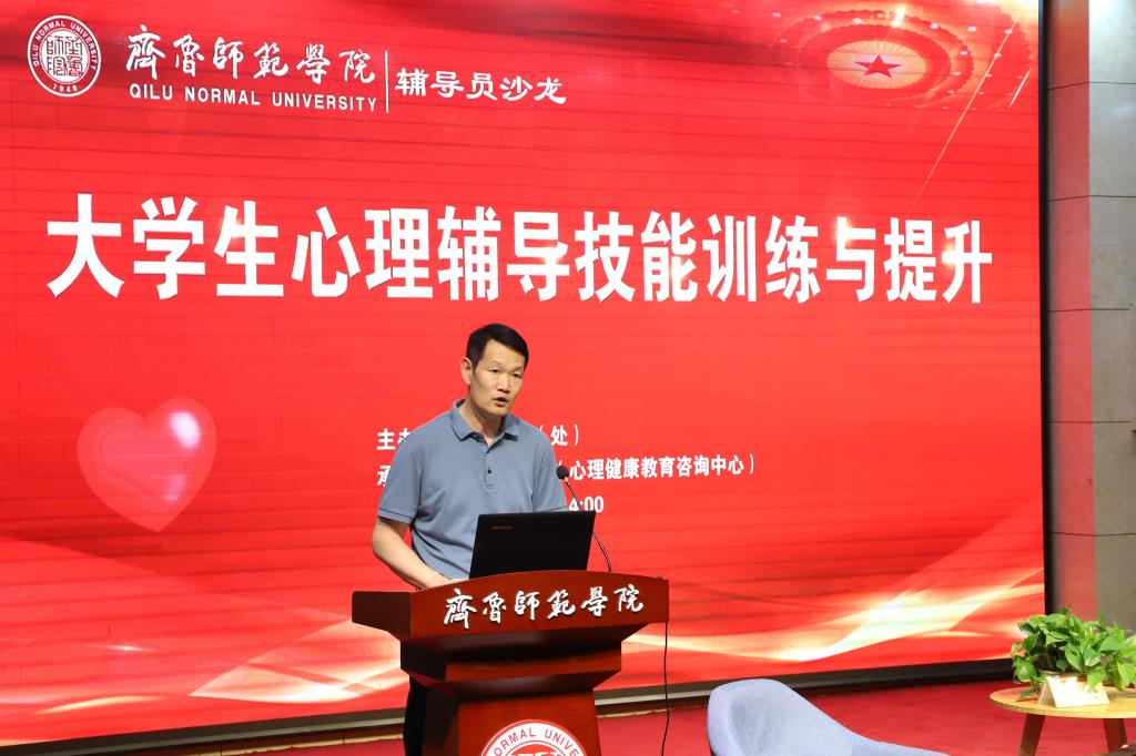 为全面加强和改进新时代学生心理健康工作,更好地提升学校学生工作队伍的思想政治理论水平、专业素养和职业能力,6月13日下午,学生工作部(处)开展辅导员沙龙活动,邀请教师教育学院副教授王铮作主题为“大学生心理辅导技能训练与提升”的辅导报告。各学院党委副书记,团总支书记、副书记,辅导员老师们参加活动。活动由学生工作部(处)部长朱礼恒主持。