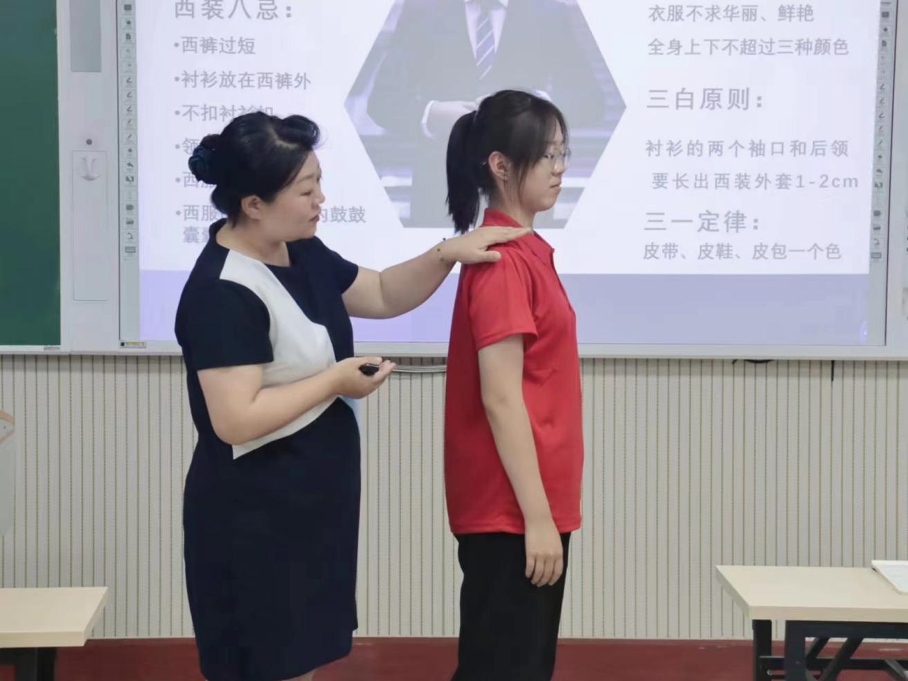 初益辰主要围绕中国的古礼文化、职场礼仪及形象管理三个方面展开,结合工作经验和同学们的实际需要,亲身示范、逐一讲解职场礼仪中的具体标准和注意事项,帮助同学们更直观地认识到规范的、职业化的礼仪在职场中的重要性。她还将职场礼仪教学与形象塑造实操进行有效结合,让同学们更加深刻地了解职场礼仪以及形象塑造的重要性,从而进一步提升职业素养,增强就业竞争力,为下一步走入职场打下良好的基础。