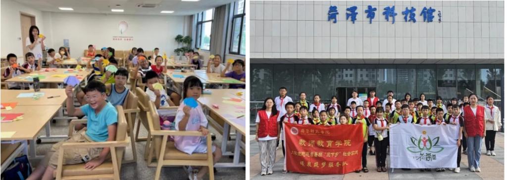 “小荷学堂”是由共青团菏泽市委联合菏泽市委组织部、菏泽市文明办、菏泽市教育局、菏泽市民政局等部门实施的暑期留守儿童关爱项目。教师教育学院曦泉筑梦服务队多次参与“小荷学堂”志愿服务活动,始终秉承“青春助力、快乐成长”的服务理念,致力于文化、科技、卫生三下乡,并多次获得优秀志愿服务队伍称号,其成员也多次被评为校级、市级优秀志愿者。