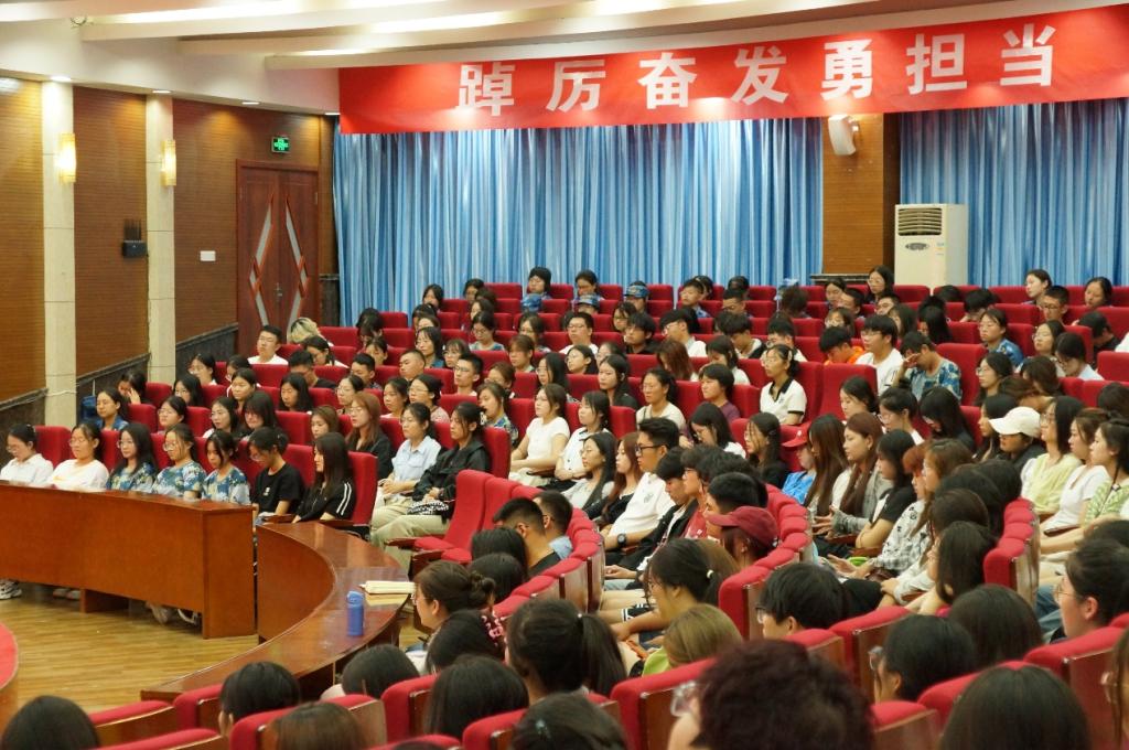 姜东菲以《讲政治、讲责任、讲学习启航新征程创造新辉煌》为题为全体新生开讲“新生第一课”。她指出,面对新角色、新要求,新时代大学生要正确看待自己的变化,启航新征程,做个明白人;她以教育家精神鼓励大家创造新辉煌,做个追梦人;在新征程、新目标开启的今天,全体学生一定要携手并肩,全面发展,弘扬教院精神,做个有灵魂的人,共同开创更加灿烂的未来。