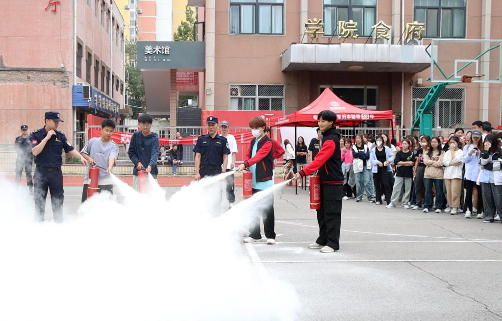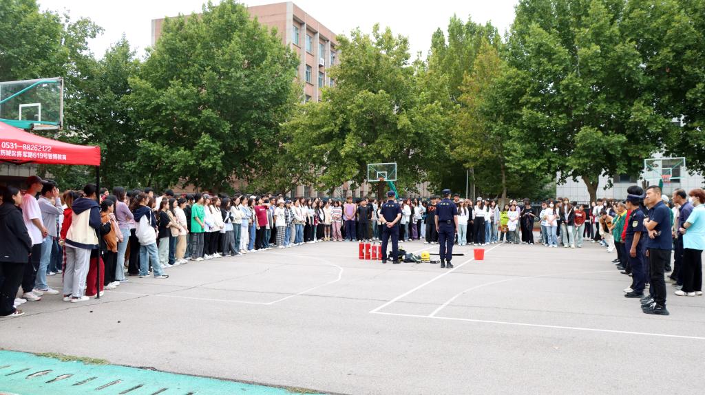 随后,天桥区应急消防站的专业人员给同学们讲解了日常消防知识和消防安全注意事项;讲解并演示了干粉灭火器的使用方法。