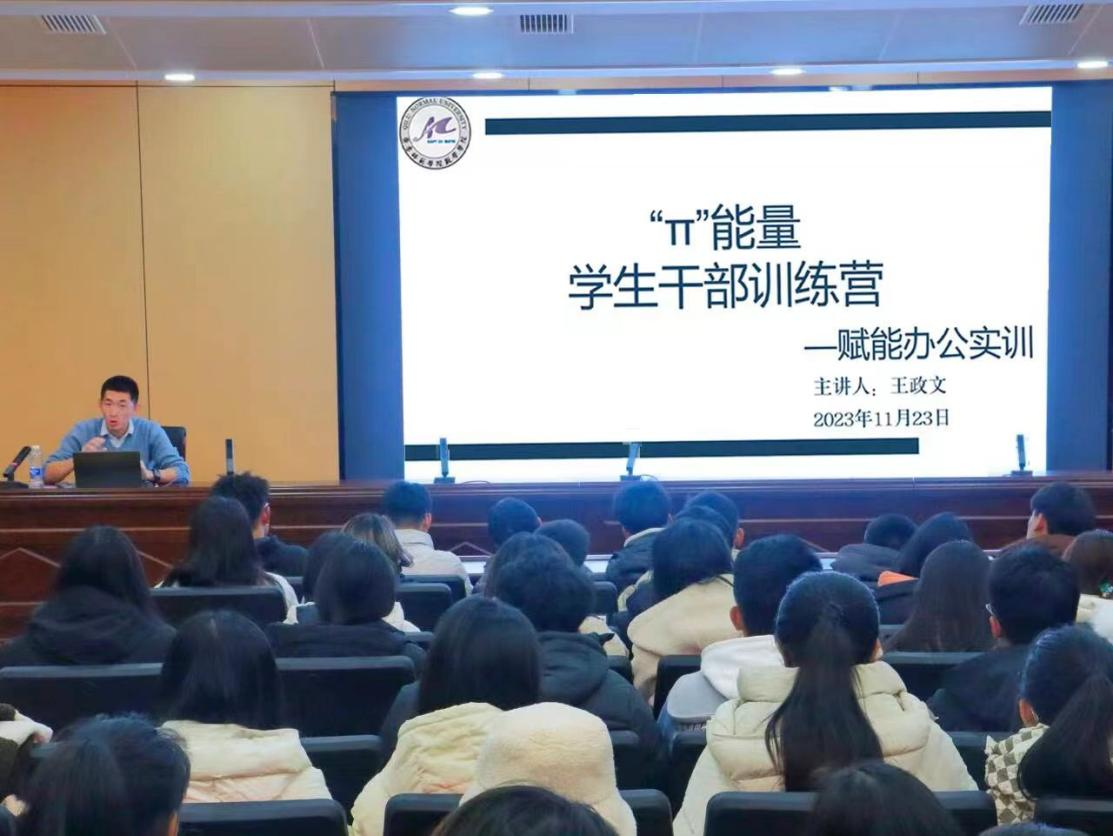 11月23日,数学学院第一期“π”能量学生干部训练营在章丘校区第二学术报告厅顺利举行。本次活动以赋能办公实训为主题,由辅导员王政文主持讲授办公软件的应用操作,全院所有学生干部参加培训。