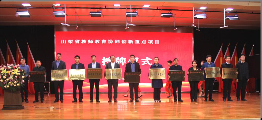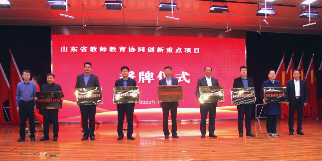 会上,张文哲和朱光耀共同为滕州市实验小学等7所学校授予“协同发展基础教育联盟学校”牌匾,张文哲和胡义忠为滕州市至善小学等11所学校授予“教学实践基地”牌匾。