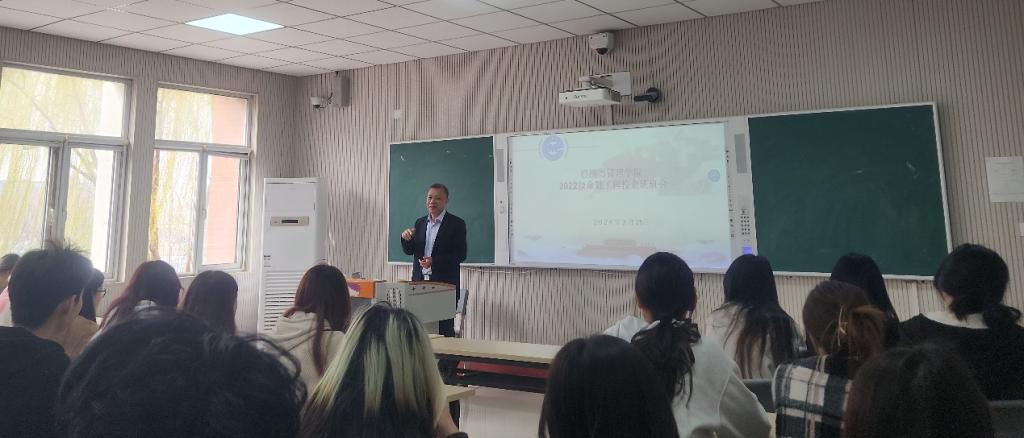 为认真落实处级干部联系班级要求,激发学生学习的积极性,提高学生的学习能力和综合素质能力,3月28日上午,学校纪委副书记于绍军为经济与管理学2022级金融工程校企班全体同学作“学习的重要性”主题报告。