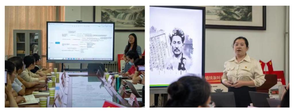 为推进主题教育走深走实,不断提升思政课教师的教学水平,6月27日下午,山东传媒职业学院思政部副主任康玉东一行9人赴金年会官网马克思主义学院开展手拉手集体备课研讨活动。活动由习近平新时代中国特色社会主义思想概论教研室主任杭丽华主持,马克思主义学院副院长刘金玲和习近平新时代中国特色社会主义思想概论教研室的授课教师共同参加了此次研讨交流活动。