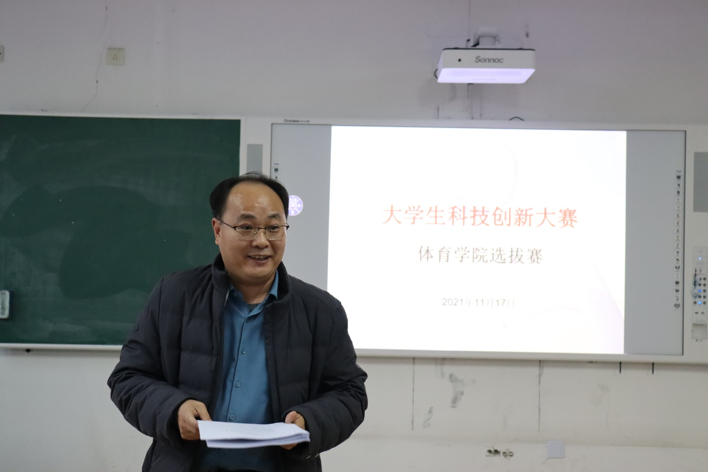 体育学院秉持“以赛促教、以赛促学、以赛促创、以赛促建”的理念,于11月17日下午在2号教学楼A317教室组织大学生科技创新大赛选拔赛。比赛特别邀请了山东省大学生科技创新大赛专家、生命科学学院副院长崔大勇教授,山东省大学生科技创新大赛校负责人、教务处孙鹏副教授作为评委,体育学院院长朱礼恒、副院长胡义忠、马涛教授及所有项目成员参加,部分师生现场观摩,比赛由党总支副书记李萧主持。
